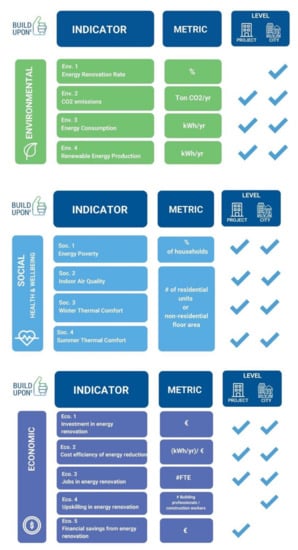 Methodology of core indicators proposed for the reporting and monitoring of the Build Upon Energy Renewal Framework [62].