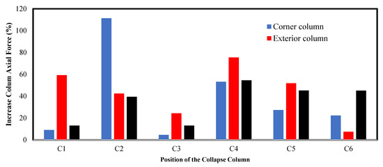 - The sudden removal of the exterior column induces the maximum excessive percentage 111.4% of the axial force in the corner column.