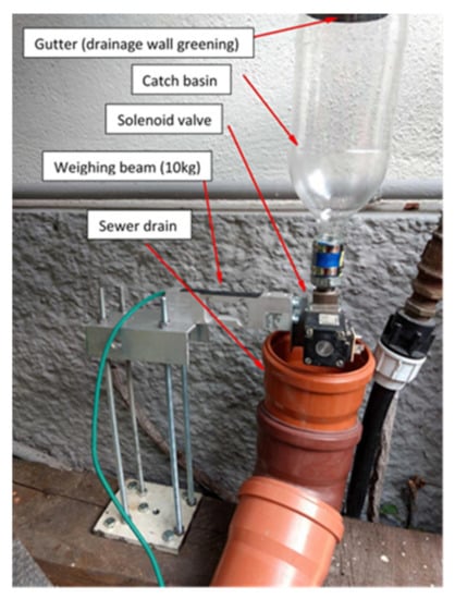 In order to measure the discharge, a measuring system (shown in Figure 5) with a balance beam was installed, which measured the weight of the collection tray (bottle). When it is full of water, the magnet valve opens and closes again at empty weight.