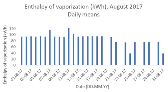 Daily mean values of evaporation energy (kWh) in August 2017.