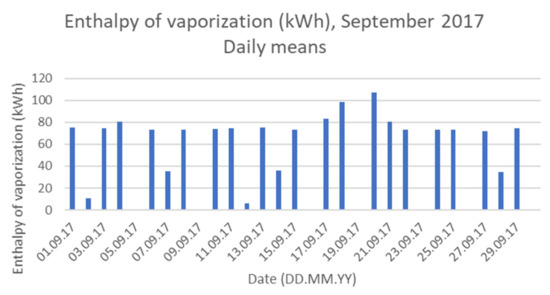 Daily mean values of evaporation energy (kWh) in September 2017.