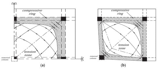 - Qian, K.; Li, B.J.A.S.J. Slab effects on response of reinforced concrete substructures after loss of corner column. ACI Struct. J. 2012, 109, 845–855. [Google Scholar]