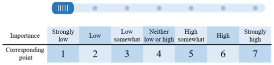 80] was used for respondents to choose from very low to very high on the importance of each assessment indicator, where each choice corresponded to a point from one to seven, as shown in