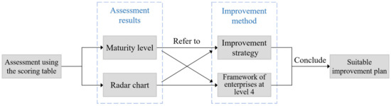 81]. The ultimate purpose of the maturity assessment of the ICM is to efficiently and accurately improve its maturity. After assessment using the maturity scoring table, construction enterprises can further understand details of their weaknesses through the indicators with lower scores, and these are the aspects that need to improve most. To provide specific improvement plans for construction enterprises, this study discussed improvement strategies from two perspectives.