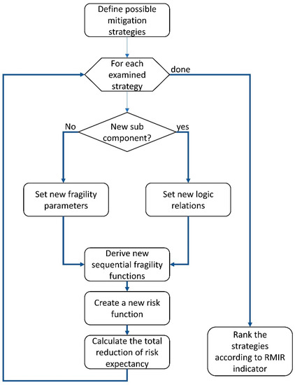 In addition, this study proposes the RMIR (risk mitigation to investment ratio) as a novel quantitative indicator in order to examine and prioritize alternative mitigation strategies. The proposed RMIR indicator evaluates alternative mitigation strategies based on cost-effectiveness of the mitigation strategies, considering integrated probabilities of all damage states and all possible seismic scenarios. This indicator is unbiased and depends on quantitative values and objective estimates of the seismic risk, CI resistance, and derived effectiveness of the mitigation alternative. Moreover, the proposed RMIR indicator covers all possible seismic scenarios due to the PSHA approach that is implemented systematically in the methodology. The RMIR examines and prioritizes the alternatives based on the risk mitigation to investment ratio. If an alternative has an RMIR greater than 1.0, the alternative is expected to be efficient in terms of risk mitigation. On the other hand, if the alternative has an RMIR lower than 1.0, the alternative is considered to be inefficient in terms of risk mitigation, meaning that the investment is higher than the expected benefits of risk mitigation. In addition, the higher the value of RMIR, the higher the cost-effectiveness of the mitigation alternative. The benefits of the proposed indicator were illustrated in the case study. The indicator allows us to examine the cost-effectiveness of the alternatives and prioritize the mitigation alternatives according to decision-maker policies. The research’s novelty focuses on a synthesis of the fragility and morphology of the system into the risk expectancy and derives a coherent indicator for seismic risk mitigation in critical infrastructures. This contribution can be used for stimulating the preparedness of energy-related CI for extreme events and can be extended to risk mitigation of other hazards such as storms, floods, shocks, and blasts [10,59].