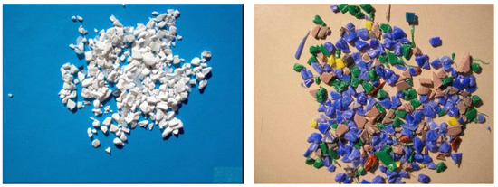 A lot of research has been made on the partial substitution of conventional limestone aggregates in concrete and mortar [1,2,3,4,5,6,7,8,9,10,11,12,13,14,15,16,17,18,19,20,21,22,23]. Authors agree that concrete containing thermoplastic waste as a substitution of conventional aggregates has lower strength than concrete that contains only conventional aggregates. This depends on the percentage of replacement and is attributed to the lower strength of thermoplastics and to the lower bond strength between thermoplastics and mortar. The profit gain from the use of thermoplastic waste as concrete or mortar constituents is a matter of assessment against the risk of nonfulfillment of the mechanical properties specifications, so an accurate mix design is necessary. All those have been previously extensively reported in review papers. Different reporting on the experimental procedure of each study raises difficulties in composing results coming from different laboratories. For this reason, Gavela et al. [24] proposed a standardized protocol for the experimental design to facilitate comparability and compatibility of future results of studies on mechanical properties.