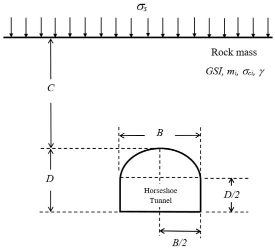 - Rahaman, O.; Kumar, J. Stability analysis of twin horse-shoe shaped tunnels in rock mass. Tunn. Undergr. Space Technol 2020, 98, 103354. [Google Scholar] [CrossRef]