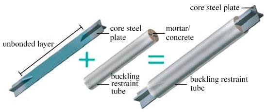 - Chen, Q.; Wang, C.L.; Meng, S.; Zeng, B. Effect of the unbonding materials on the mechanic behavior of all-steel buckling-restrained braces. Eng. Struct. 2016, 111, 478–493. [Google Scholar] [CrossRef]