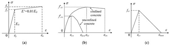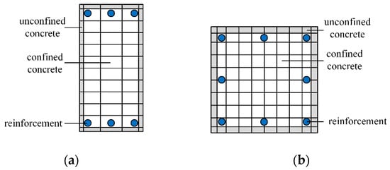 - Mander, J.B.; Priestley, M.; Park, R. Theoretical Stress-Strain Model for Confined Concrete. J. Struct. Eng. 1988, 114, 1804–1826. [Google Scholar] [CrossRef]