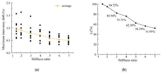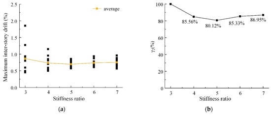 - The simulative results have shown that with an increase in the stiffness ratio, the stiffness and strength of the PCF-BRB structure were constantly increasing. However, for the four-story PCF-BRB structure, the greater the stiffness ratio, the smaller the reduction of the average maximum inter-story drift. For the 12-story PCF-BRB structure, when the stiffness ratio was 5.0, the maximum inter-story drift reduction reached the maximum.