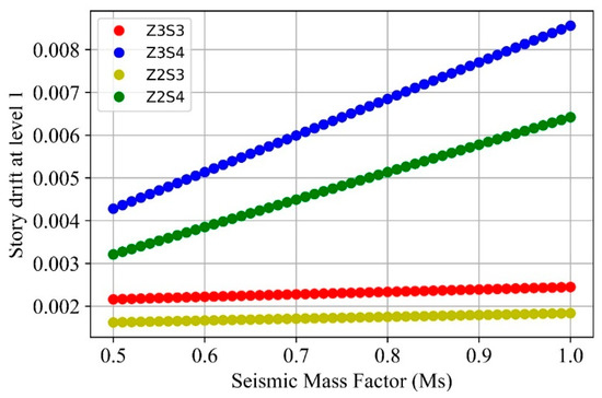 Variation of seismic mass factor (Ms) vs. drift at level 1.