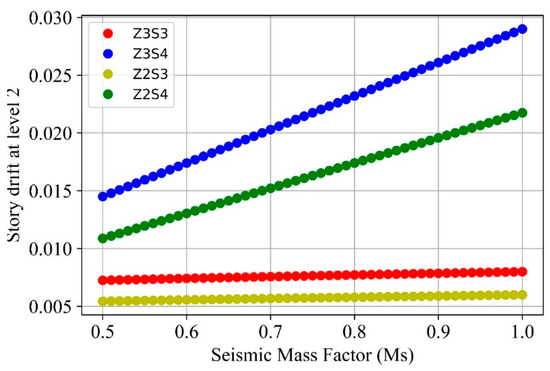 Variation of seismic mass factor (Ms) vs. drift at level 2.
