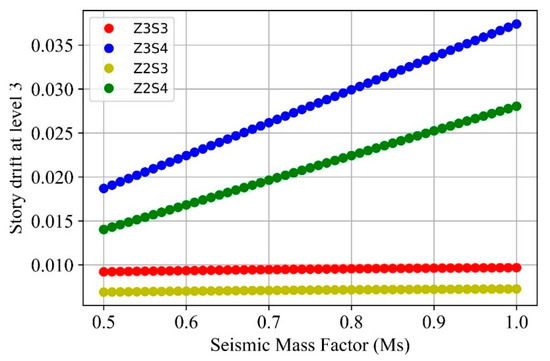 Variation of seismic mass factor (Ms) vs. drift at level 3.