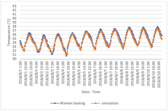 Temperature calibration of the simulation results for the family seating area in the traditional house in Hail City.