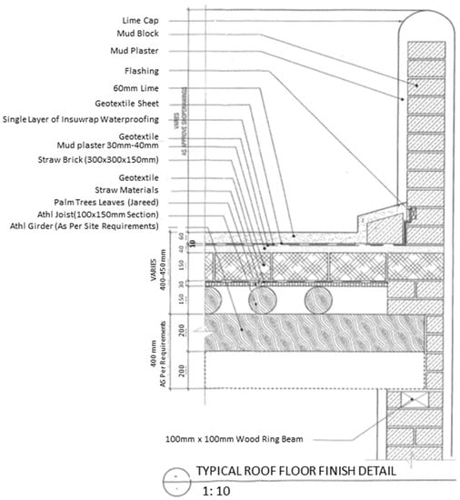 The construction systems of vernacular buildings should be analyzed to understand their contribution to climate control. Traditional building envelopes were affected by thermal mass systems, which are equivalent to heat capacities. Vernacular architecture in the Najd region employs thermal mass to minimize heat gains; it uses various strategies such as dense materials for roofing, floors, and walls, as well as increased external or cavity insulation. The walls of the house support the floors and also provide thermal mass for the house overall. Walls up to 450 mm thick can be built using unfired clay blocks and a mixture of clay and gypsum-based render (Figure 11).