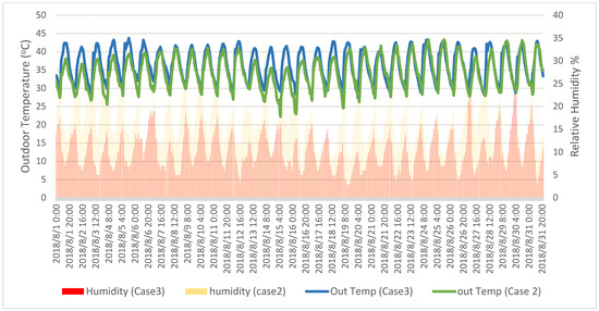 Cases 2 and 3 hourly measured outdoor weather data for August 2020.
