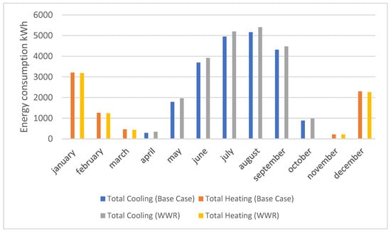 The annual energy consumption for Case 1 with modifying the WWR to adapt the contemporary house characteristics.