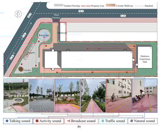 (a) Indoor sound sources in the nursing home; (b) outdoor sound sources in the nursing home.