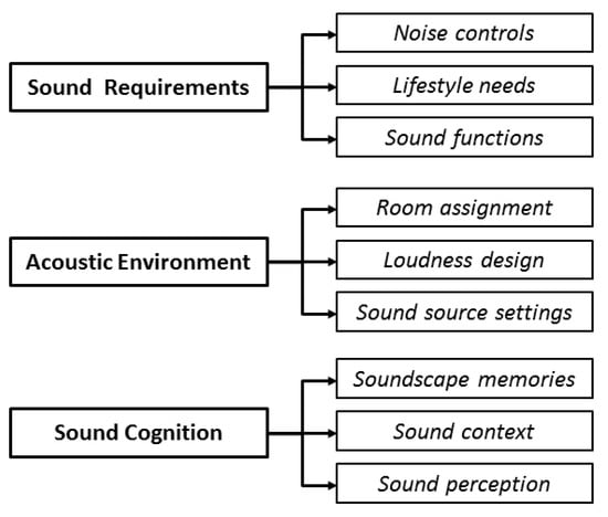 Secondly, some of sound requirements of blind older adults can be fulfilled with the acoustic environment of nursing homes. Since different building materials and reverberation times can indicate changes in the surroundings or space for blind residents, designers can help blind older adults understand their location by varying the reverberation time and footstep echoes caused by changes in the space volume, height or floor material, which managers of nursing homes may add to the interior nodes of nursing homes the wall plants or small ornaments such as wind chimes and birdcages, to create beautiful sounds for blind residents and help blind older adults make orientation judgments. In addition, as for acoustic environments, some designers are more focused on controlling the physical parameters of sound, while others intend to use ideal sounds to create a good acoustic environment [61]. The blind older adults put forward their needs for sound and the acoustic environment from the perspective of users, providing a new design direction for designers. As for the acoustic design of the living environment of the elderly or the disabled, especially the visually impaired, the should reasonable room layout, the sound insulation measures and the special needs of users should also be considered.