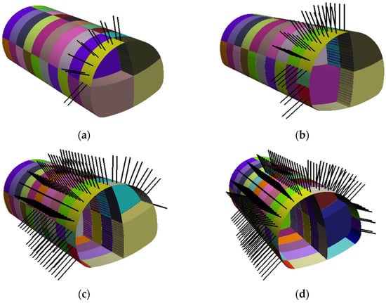 Primary support under the excavating process. (a) part I (step 2); (b) part II (step 6); (c) part III (step 20); (d) part IV (step 28).