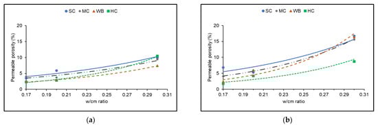 3.4.1. Effect of w/cm Ratio and Permeable Porosity