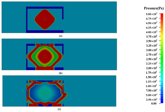 Shock wave propagation. (a) 0.09 ms; (b) 0.13 ms; (c) 0.20 ms.