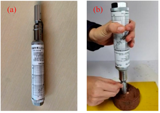 The Japanese-made soft rock strength test and needle penetration instrument calculate the uniaxial compressive strength by testing the needle penetration index of soft rock. This test can be directly tested on the rock mass and can be tested indoors and outdoors. This test method is especially suitable for mudstone. It has become the strength test method of soft rock recommended by the International Rock Mechanics Association (ISRM) [23,24].
