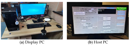 The Eyelink 1000 Plus (SR Research Ltd. in Ottawa, Canada) used in this study was an eye tracker produced by Canadian SR Research company. It had a binocular sampling rate of 2000 Hz and could record both eyes’ movement speed at 2000 frames per second. The measurement accuracy can be controlled within 0.15° [68]. Figure 2a showed an Eyelink 1000 Plus connected to a computer, which can display the selected pictures to the participants and collect eye movement indicators. In Figure 2b, an experimental host was used to set parameters of the eye tracker, calibrate eyes and control the experimental process.
