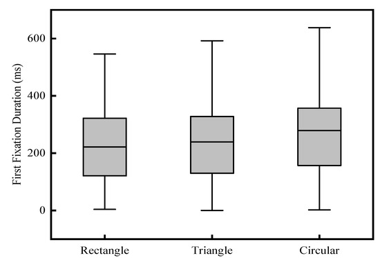 Box plot of construction safety signs’ first fixation duration in different shapes.