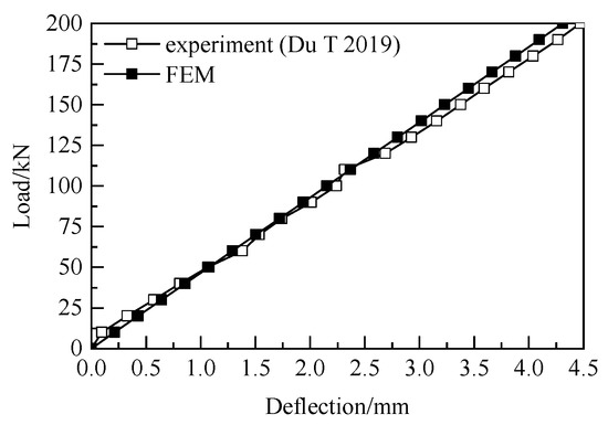 The FEM is verified by the load-deflection relationships between the experimental test and the numerical results as shown in Figure 10.