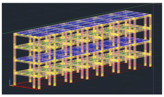 The concrete of the building is C30, while the rebars are HPB235 and HRB335, respectively. The PKPM model is displayed in Figure 8, and the reinforcement information of the components is obtained.