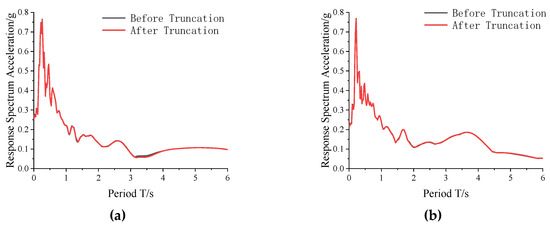 Response spectrum of RSN1484 before and after truncation. (a) The response spectrum of RSN1484-E before and after truncation. (b) The response spectrum of RSN1484-N before and after truncation.