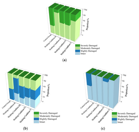 After obtaining a total of 135 simulation models, the structural damage states accounted for the highest level in each site, and working conditions are selected for comparison, as shown in Table 10.