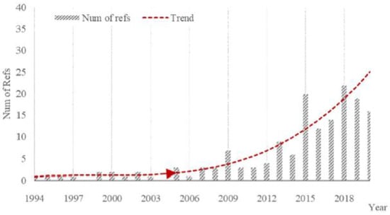 The fourth industrial revolution has increased the implementation of AR in urban development studies. Figure 3 illustrates the number of research articles published, indicating that interest in the AR field has grown since the fourth industrial revolution. AR has seen significant growth and implementation in civil infrastructure in recent years compared to its early years [43,44,45,46].