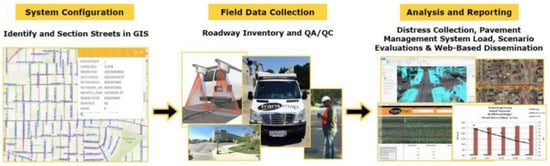 Since quantifying all advantages and disadvantages may be challenging, an agency might do a fast study to determine the cost-effectiveness of deploying a PMS [29]. In the past, surface distress assessment data were collected either by walking along the shoulder (walking surveys) or by driving alongside its shoulder (riding surveys, also called windshield inspections) [30,31]. These approaches take a long time, require costly equipment, and may create traffic issues. Nevertheless, data are automatically collected, even for surface distresses [32,33].
