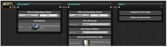Data preparation is needed to overcome the limitations of importing the CityEngine model into the Unity game engine. This step is a new term. In Unity, custom imports, scripts, and FBX models are used. FBX is a proprietary format for exchanging 3D geometry with Autodesk’s freely available Software Development Kit (SDK). Access through the Unity game engine is now the leading exchange format for AR/VR applications and game engines. The FBX model is the output of the CityEngine which will be imported here for the rest of the process. A data flow graph can be built visually and say what is needed to do with the data which has been imported. Figure 9 represents the view of Unity in the data preparation step.