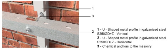 The CFS elements are placed in adhesion to the masonry by means of non-penetrating chemical anchors, as shown in Figure 2, with injection of resin into holes of appropriate diameter and length following each other with a regular pitch.