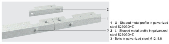 Each U–shaped profile is connected to the adjacent one to guarantee the continuity of the reinforcement via galvanized steel plates and class 8.8 bolts (Figure 3).