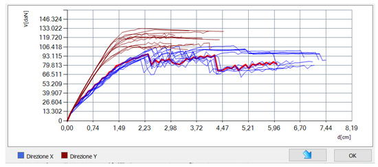 Subsequently, the pushover analyses on the building after interventions were carried out based on the 24 load combinations already used for the bare building. In Table 5 the worst results related to the two analysis directions are highlighted in green.