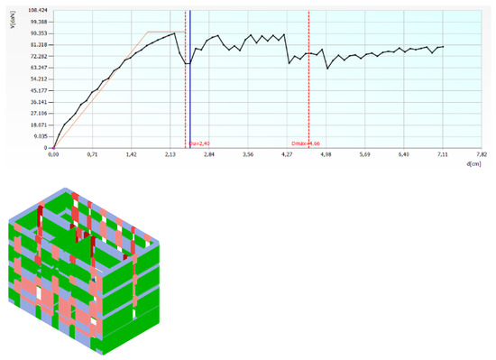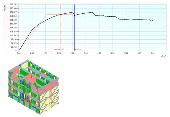 Table 3 shows the results of the pushover analyses carried out on the structure with reference to the results corresponding to the worst verification. In particular, at the Life Safety (LS) limit state, the worst analyses are No. 2 in the X-direction, with α = 0.510, and No. 22 in the Y-direction, with a value of α equal to 0.780.