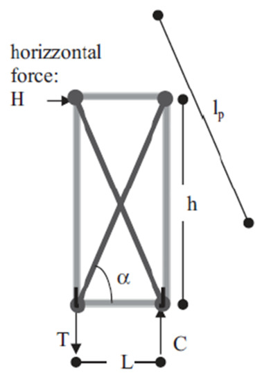 Representation of the geometric parameters used in the calculation of the equivalent brace.