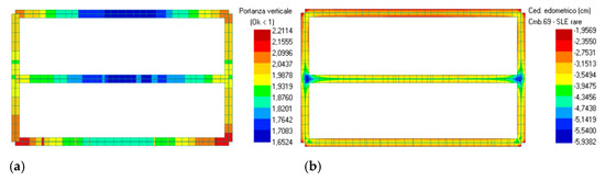 Outcomes of the bearing capacity (a) and subsidence (b) for the beams of the reinforced foundation.