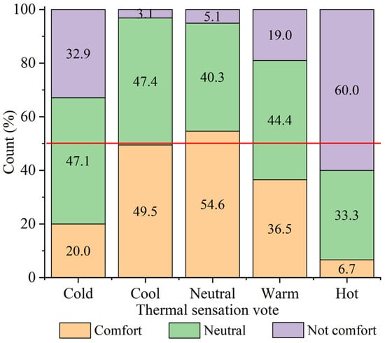 Compared with the physical indoor parameters, TS or AS can reflect the general comfort sensations of an indoor environment. The relationship between comfort sensations, TS and AS is discussed in this section, and Figure 8 shows the result of our survey.