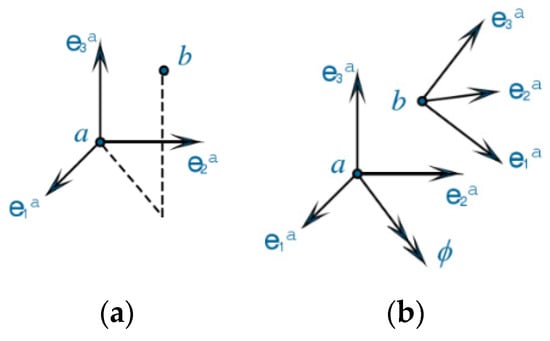 Translational and rotational relations of the Cartesian connector: (a) translational relation, (b) rotational relations.