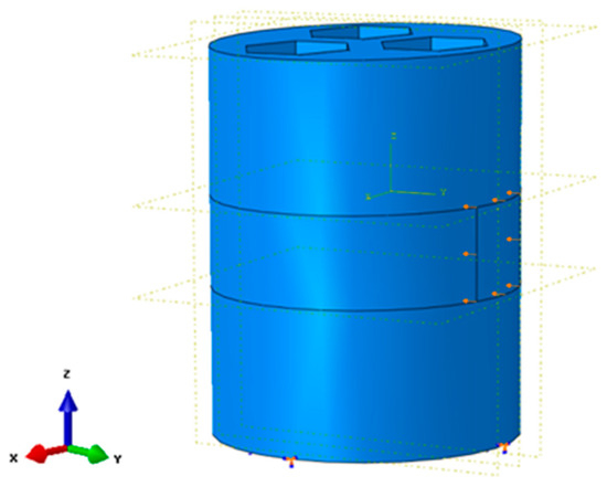 The finite element of the cylindrical collision pier is designated as 650 mm in diameter and 850 mm in height, following road traffic collision pier design specifications [23,24,25]. The anti-collision pier is made of Polypropylene Acetate (PLA) material, which is a novel bio-based and renewable biodegradable material. It exhibits outstanding biodegradability and can be completely degraded by microorganisms in nature under specific conditions after use, eventually generating carbon dioxide and water, and is recognized as an environmentally friendly material, suitable for the production of anti-collision piers [26].