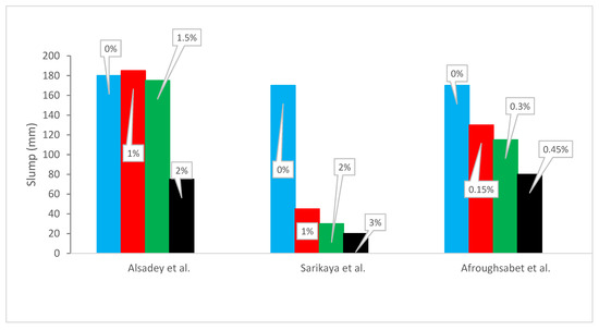 Slump Flow: Alsadey et al. [44], Sarikaya et al. [54] and Afroughsabet et al. [39].