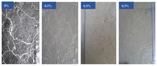 It is evident from the micrographs in Figure 4 that the fibers are situated inside the crack’s breadth and act as connecting bridges. The fibers’ property inhibits the separation of cracked concrete fragments. It was discovered to be particularly successful in reducing crack areas as well as the widths and lengths of shrinkage cracks. The average number of cracks and crack area was reduced by 60% when fibers at 0.1 percent were used [74]. Figure 4b shows a schematic illustration of how fibers may act as a bridge to a connection and stop cracks from spreading.