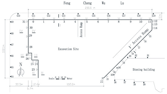 - GB 50497-2009; Ministry of Housing and Urban-Rural Planning Development of the People’s Republic of China. Technical Code for Monitoring of Building Excavation Engineering. China Building Industry Press: Beijing, China, 2009.