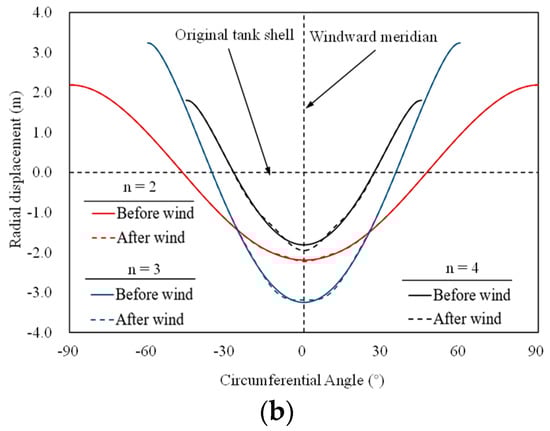 3.1. Deformation of the Tank Shell under Pure Harmonic Settlement