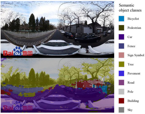 An example of semantic segmentation processing of Baidu street view imagery (The Chinese term ”地图” means “map”).
